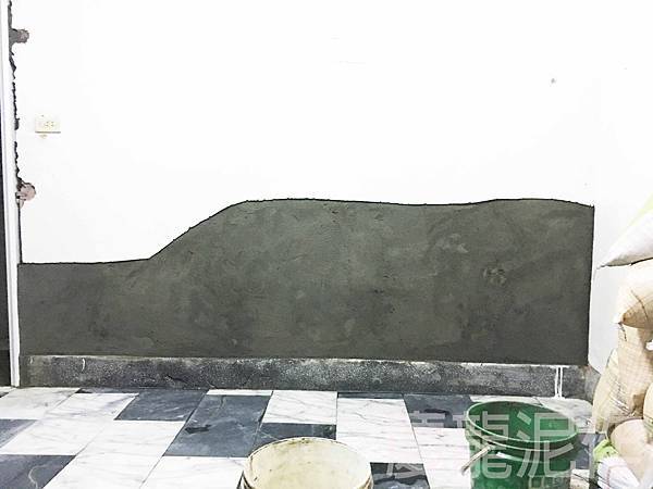 加入防水材質於混凝土將原本凹凸不平的牆面抹平。